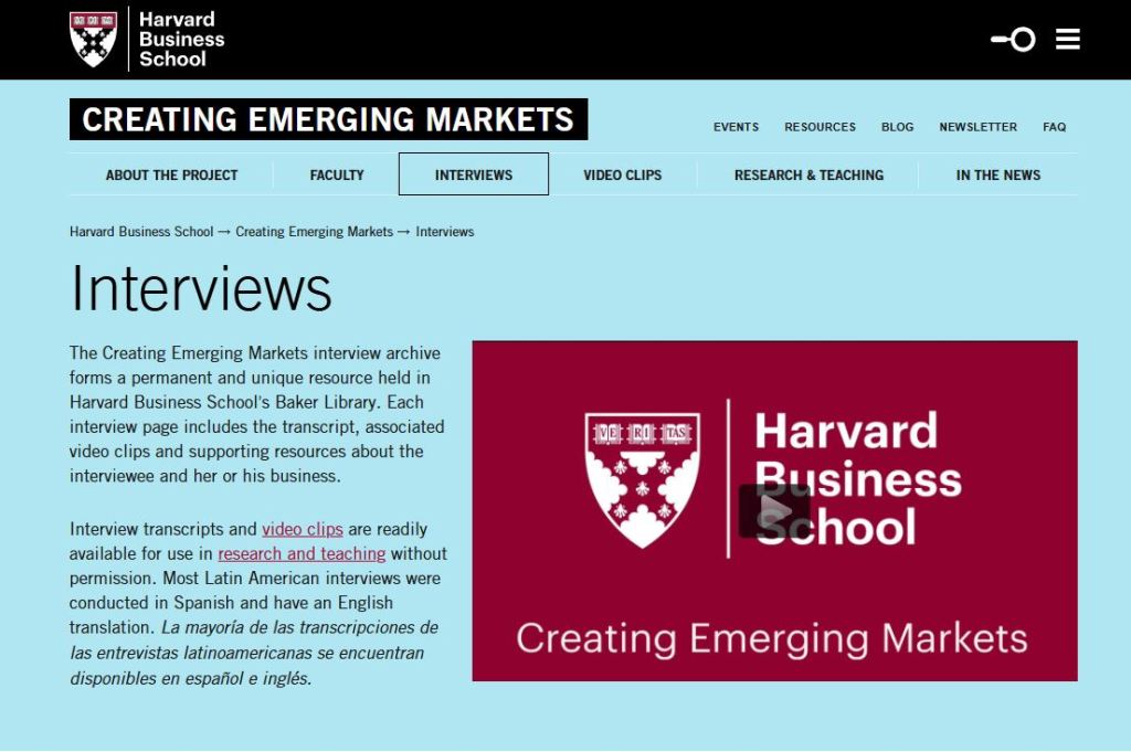 - (45 min) Con base en las entrevistas a empresarios de países emergentes publicadas en https://www.hbs.edu/creating-emerging-markets/interviews/Pages/default.aspx: